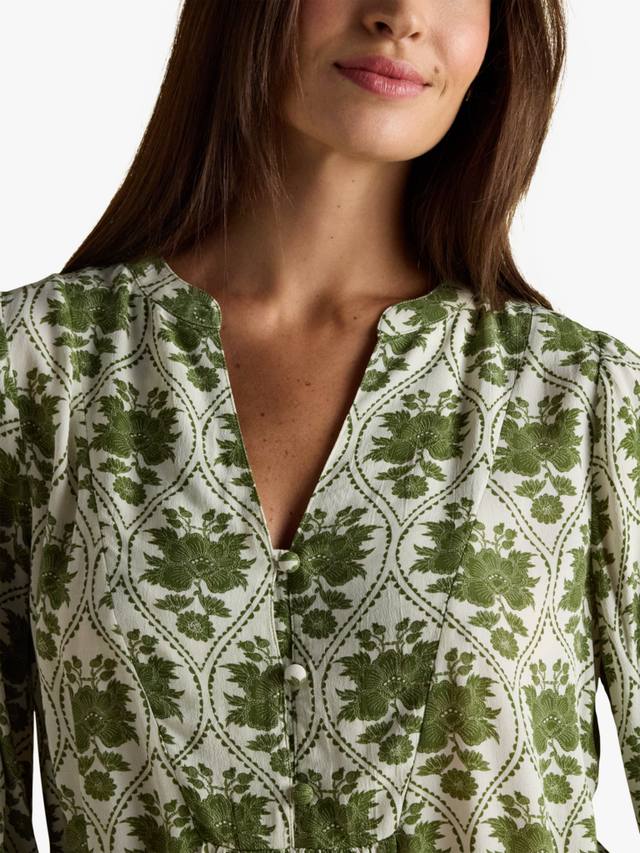 Эта блузка с цветочным принтом сочетает в себе очарование и комфорт благодаря мягкой вискозе и привлекательному V-образному вырезу. Длинные рукава согреют вас, а универсальный фасон идеально подходит как для активных дней, так и для непринужденных моментов.