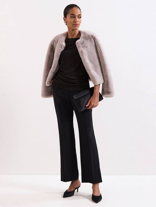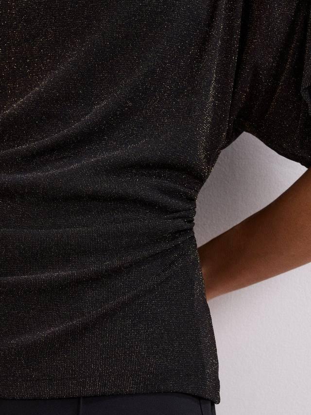 Блузка с драпировкой от Phase Eight. Круглый вырез горловины и короткие свободные рукава дополнены металлическим блеском. Она будет блистать на любой встрече.