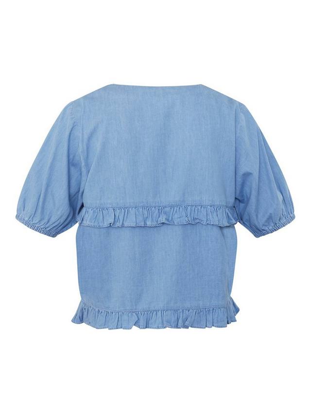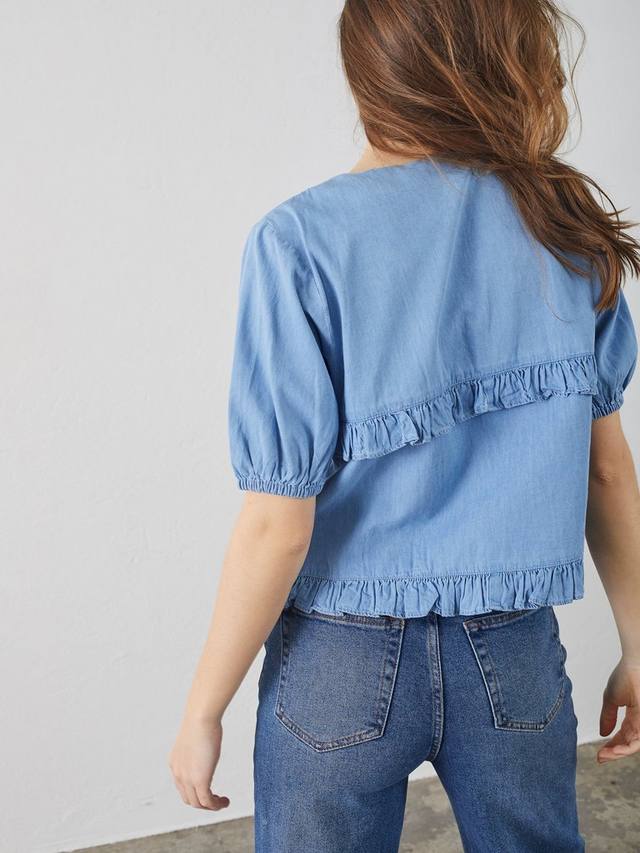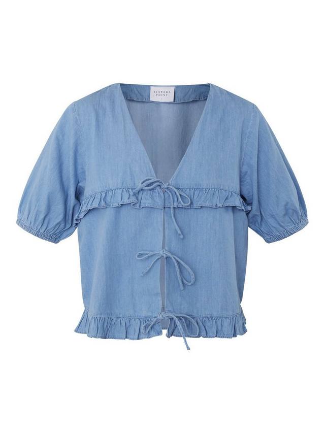 Эта блузка с завязкой спереди от Sisters Point с оборками выполнена из хлопка с привлекательным V-образным вырезом и короткими рукавами-буфами.