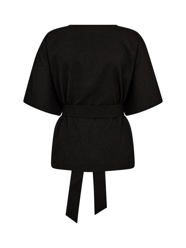 Великолепная блузка с поясом-завязкой, свободного кроя и спущенным плечом. Легкий блестящий штрих превращает эту модель из повседневной в вечернюю.