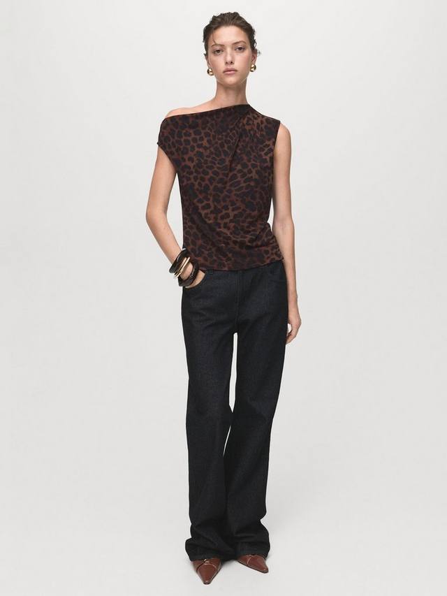 Простой и универсальный топ от Mango. Асимметричный вырез горловины и леопардовый принт. Отличный вариант для повседневного гардероба.