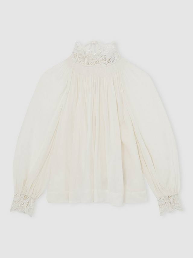 Эта объёмная блузка с длинными рукавами отличается высоким воротом и элегантным силуэтом с кружевными вставками. Продуманные детали обеспечат вам комфорт как на встречах, так и на вечерних мероприятиях, делая её универсальным выбором для вашего динамичного образа жизни.