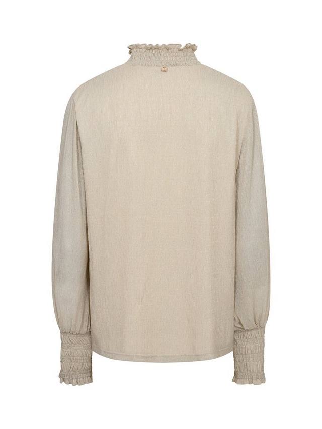 Ощутите всю прелесть гламура в этой потрясающей блузке слегка свободного кроя. Изготовлена из шикарной блестящей ткани и дополнена сборками на горловине и манжетах. Дополните образ элегантным классическим кроем или джинсовой тканью, чтобы придать образу женственности.