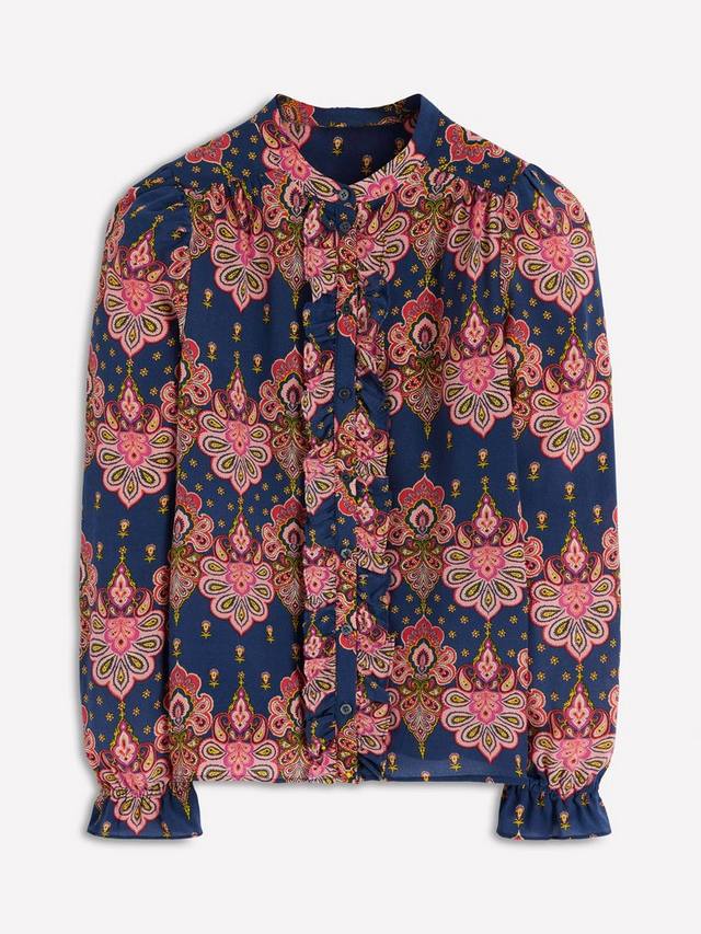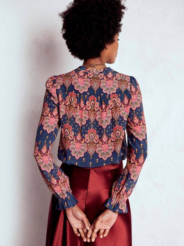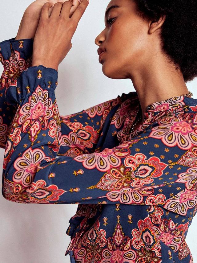 Эта блузка от Boden с нежным узором пейсли — лёгкий выбор. Классический круглый вырез горловины и длинные рукава создают роскошный образ из чистого шёлка. Это удобный вариант для дневного ношения.