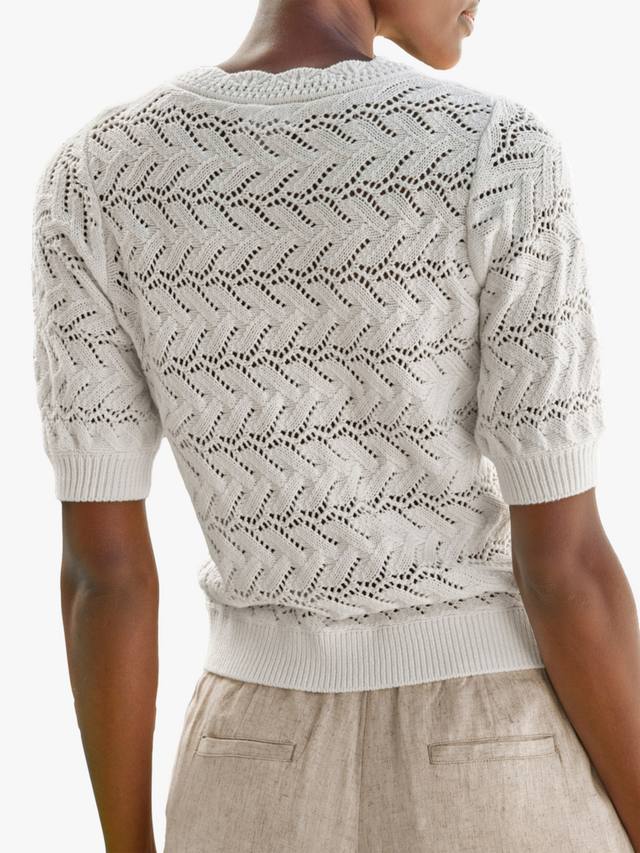 Выглядите непринужденно и шикарно в этом вязаном крючком топе. Этот изысканный вариант с четкими, четкими линиями идеально подходит для теплой погоды, поскольку он выполнен из приятного и приятного на ощупь чистого хлопка.