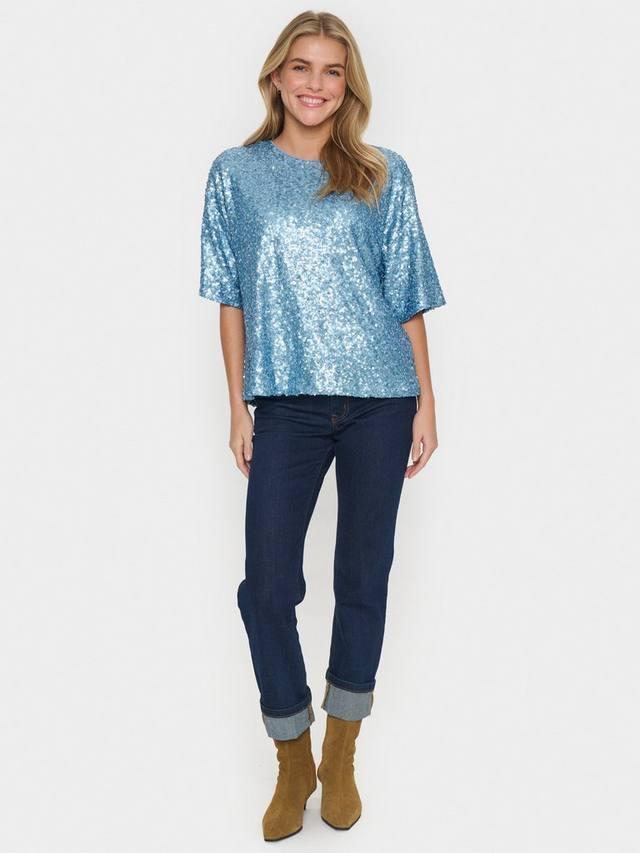 Блузка Jada — это блестящий топ, который украсит любой день. Она расшита пайетками, имеет круглый вырез и свободный крой. Рукава полудлинные, широкий крой, верх с отрезом на бедрах.