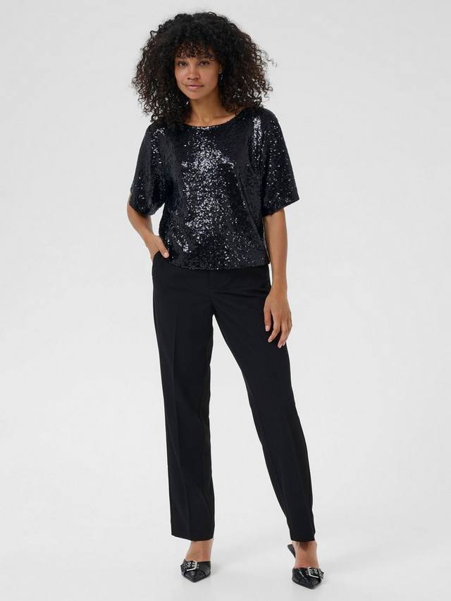 Блузка от KAFFE. Круглый вырез горловины и рукава до локтя, а простой крой позволяет сочетать её с чем угодно. Она будет блистать на любой встрече.