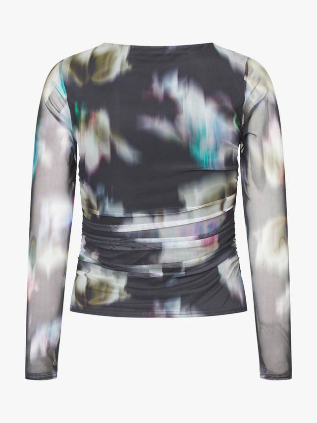 Esme — это облегающий сетчатый топ с оборками и ярким принтом.
