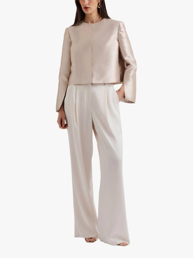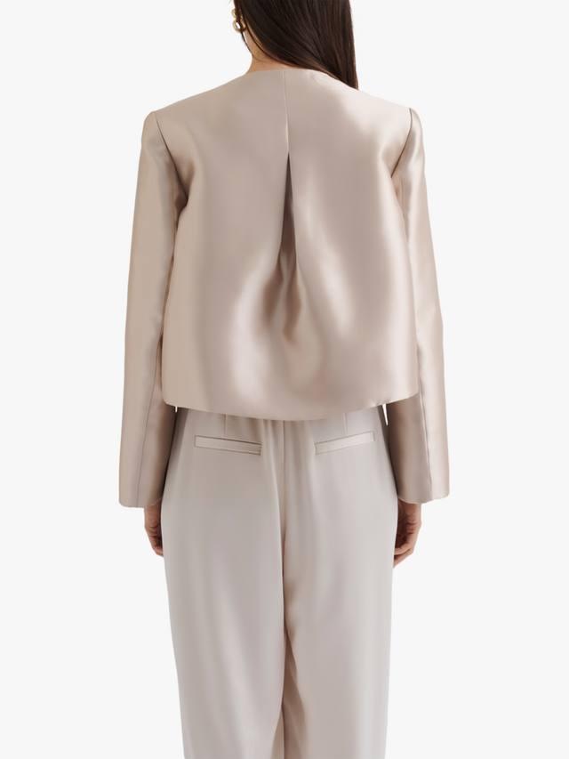 Эта блузка от Malina выполнена из мягкого блестящего атласа с круглым вырезом и разрезами на рукавах.