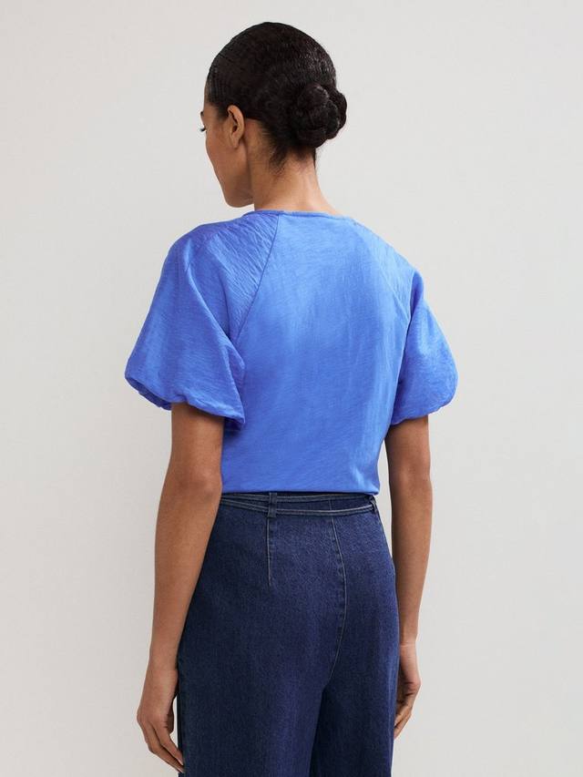 Переосмысление традиционного трикотажного топа, привнесение женственности и современности. Этот топ изготовлен из 100% хлопка и отличается игривыми рукавами-буфами, которые добавят индивидуальности даже самым простым нарядам. Он легко сочетается с вашими повседневными джинсами или брюками, являясь воплощением непринужденного современного стиля.