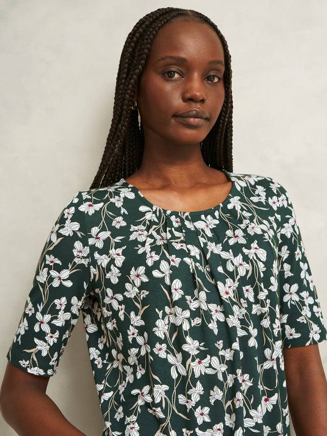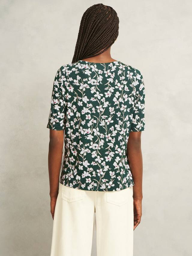 Футболка с круглым вырезом с цветочным принтом, изготовленная из мягкой вискозной смеси, легко стилизуется — идеально подходит для летних выходных или расслабленных вечеров дома.