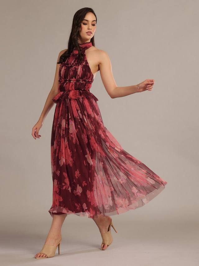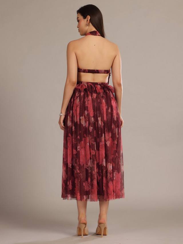 Топ Blossom от Lace & Beads выполнен из фактурного тюля и украшен цветочным принтом по всей поверхности. Выполнен в стиле американской проймы с открытой эластичной спинкой.