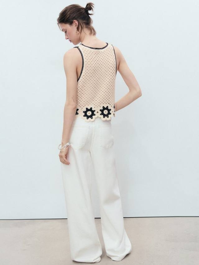 Эта футболка без рукавов с круглым вырезом украшена вышитыми цветочными узорами, создающими игривый акцент. Мягкая и лёгкая, она обеспечит вам комфорт на весь день, независимо от того, исследуете ли вы окрестности, отдыхаете или общаетесь с друзьями.