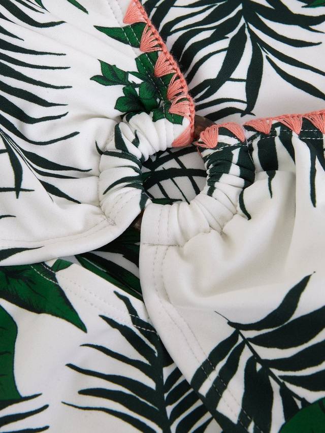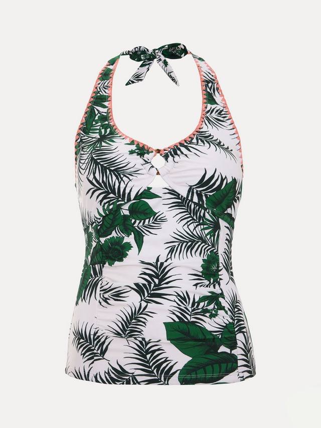 Разработанный для солнца, песка и моря, этот танкини станет отличным дополнением к вашему списку вещей для отпуска. Тропический пальмовый принт дополнен контрастной строчкой для создания современного образа. Сборки на лифе создают удобную посадку, которая придаст вам уверенности и стильности.