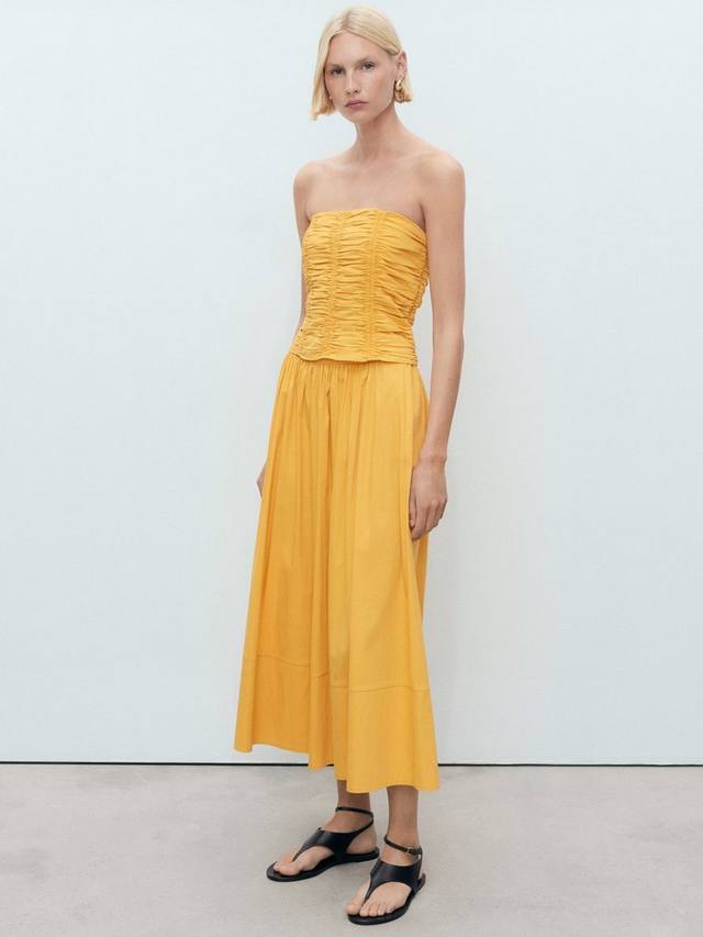 Этот укороченный топ-бандо от Mango — свежий взгляд на летние дни, сохраняя прохладу и комфорт. Без рукавов он не стесняет движений, идеально подходит для непринужденных прогулок в теплую погоду.