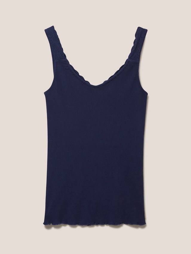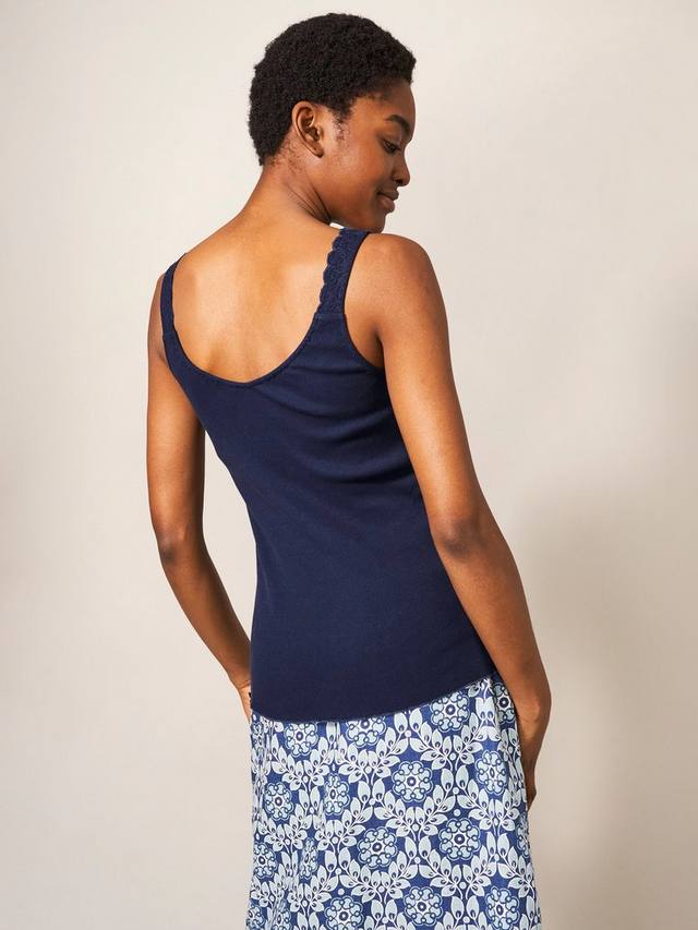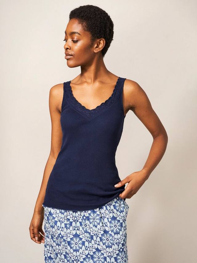 Топ-майка из чистого хлопка в рубчик с кружевной отделкой на вырезе.