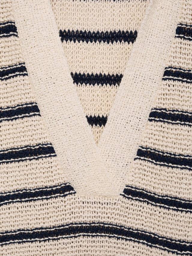 Это полосатое платье миди сочетает в себе игривые линии с продуманным V-образным вырезом для повседневного комфорта. Прямой крой подойдет для любого случая, придавая вам уверенности и легкости, куда бы вы ни отправились.