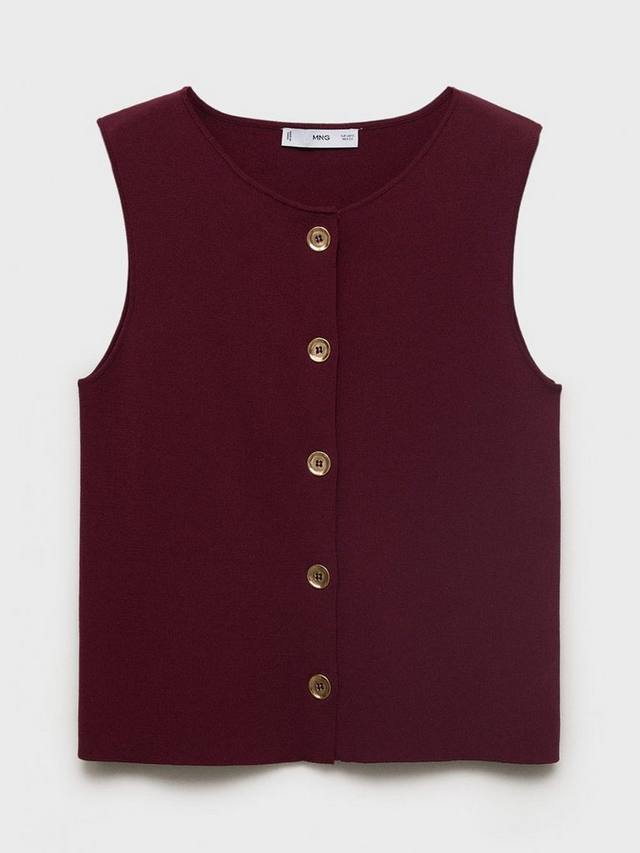 Мягкий трикотажный жилет Mango – его четкие линии, легкая вискозная ткань и круглый вырез горловины создают элегантный образ для насыщенных дней. Застегивается на пуговицы спереди.