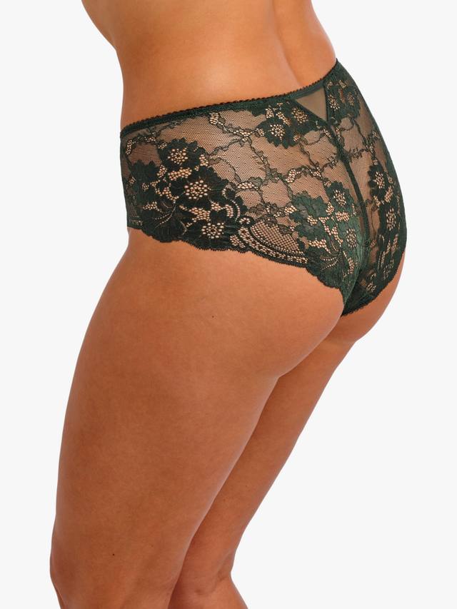 Модели из кружева нацуки выполнены из нежного матового эластичного кружева с роскошными атласными вставками. Трусики-брифы из эластичного кружева спереди имеют среднюю посадку, полностью закрывающую спину, декоративную резинку на талии сзади и спереди на штанинах, а также кружевной фестончатый элемент на V-образной сетчатой вставке по центру спереди. Верхняя часть отделана атласной окантовкой.