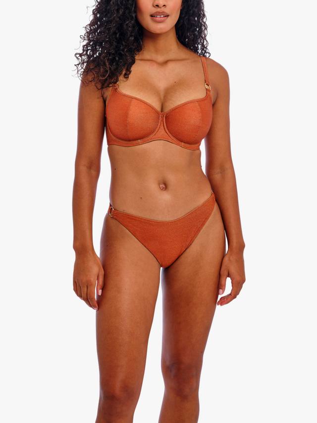 Изготовлено из металлизированной золотой пряжи для создания легкого мерцанияВысокая посадка на бедрахНеплотно прикрывает низВысокий вырез для уменьшения прикрытияДекоративные кольца в стиле бамбука по бокамДоставка товаров осуществляется курьером или на пункт выдачи заказов.