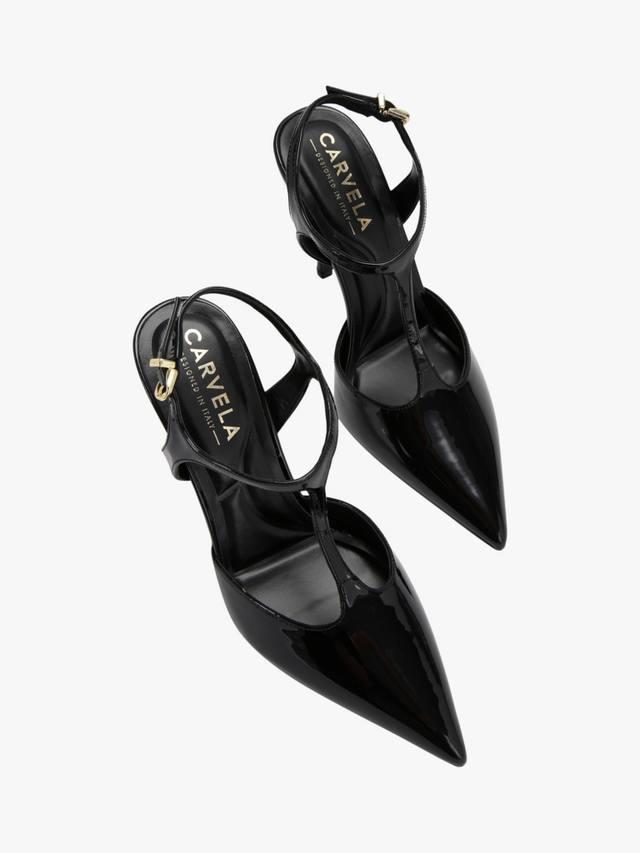 Уверенно владейте своим вечером в туфлях-лодочках Carvela на высокой шпильке. Острый носок, сетчатый верх и надежная пряжка обеспечивают поддержку на всю ночь, а черная лакированная отделка обеспечивает комфорт.
