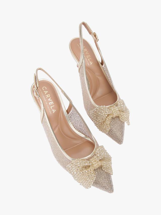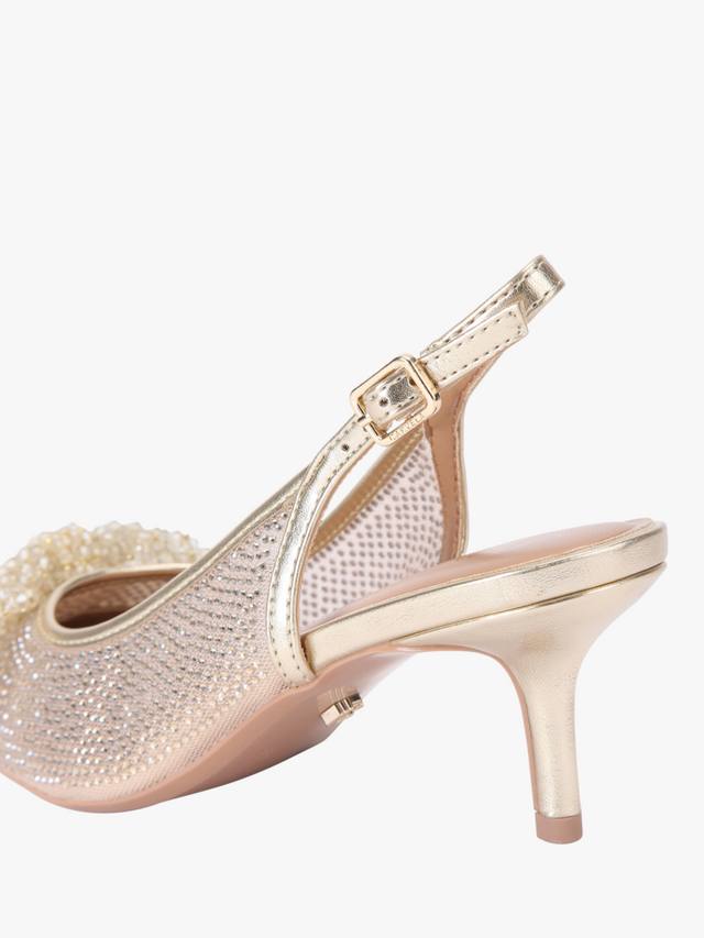 Добавьте блеска вашему праздничному наряду с этими декорированными туфлями-лодочками Chiara от Cavela. Эти классические туфли с открытой пяткой украшены бисером и кристаллами, дополнены каблуком-шпилькой средней высоты и ремешком на щиколотке с пряжкой.