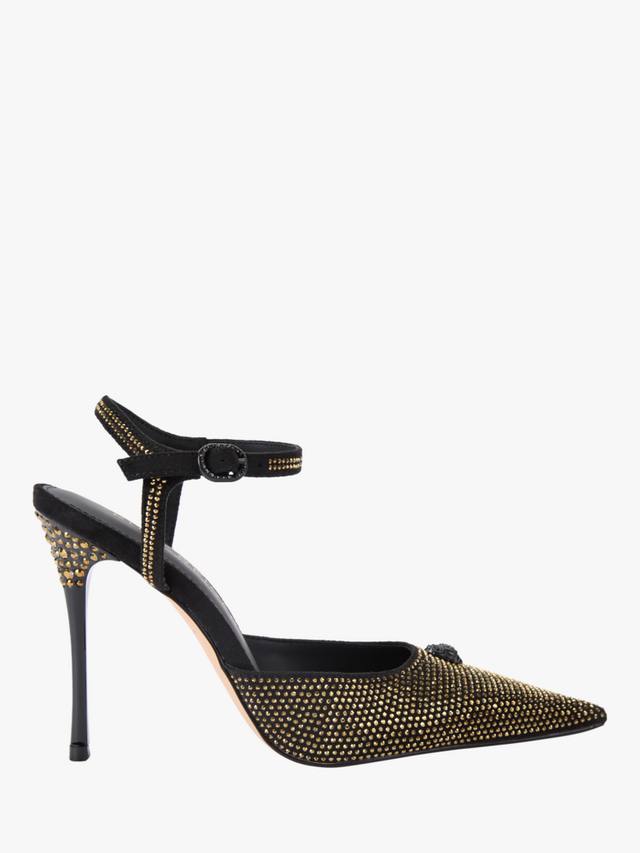 Эффектные туфли-лодочки с острым закрытым носком и эффектной отделкой. Высокая шпилька и надежная застежка-пряжка добавят уверенности и очарования вашему вечернему образу.