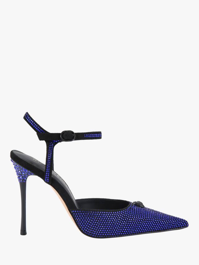 Эффектные туфли-лодочки с острым закрытым носком и эффектной отделкой. Высокая шпилька и надежная застежка-пряжка добавят уверенности и очарования вашему вечернему образу.