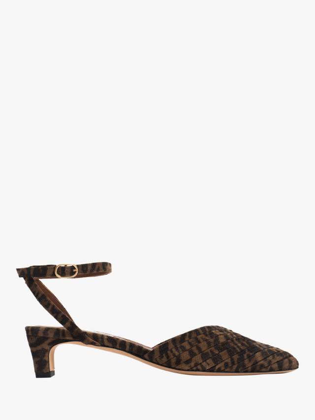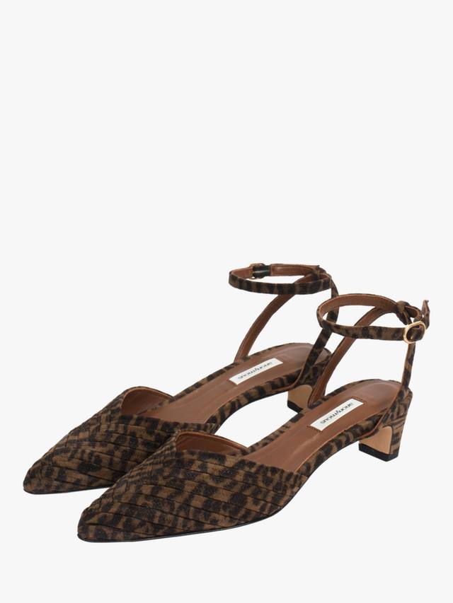 Модель Givia 40 отличается скульптурным профилем D'Orsay с мягко квадратной пяткой и заостренным носком. Изготовленные из мягкой замши с принтом ягуара и изящным ремешком на щиколотке, они сочетают в себе интересную фактуру с утонченной элегантностью.
