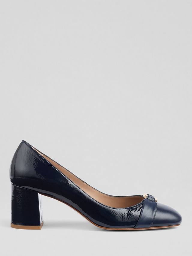 Эти туфли-лодочки Kate изготовлены из роскошной лакированной ткани с жатым тиснением и насыщенным тёмно-синим покрытием, имеют классический силуэт и структурированный блочный каблук для комфорта в течение всего дня. Роскошная кожаная подкладка обеспечивает исключительный комфорт, а текстурированный лакированный верх добавляет изящный акцент этим элегантным туфлям.