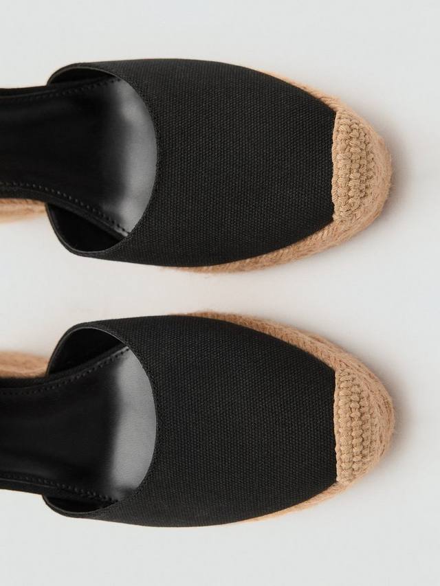 Эспадрильи на танкетке, созданные для комфорта в течение всего дня и непринужденного стиля. Закрытый парусиновый носок и свободная посадка обеспечивают удобство, а приподнятый каблук-верёвка и застёжка на щиколотке добавят элегантности вашему образу в тёплую погоду.