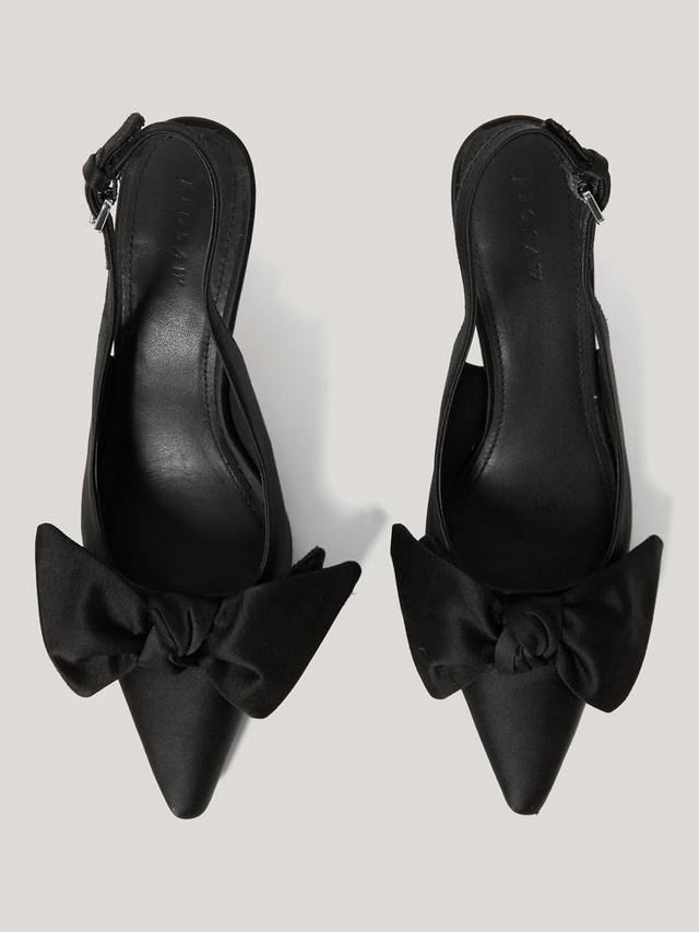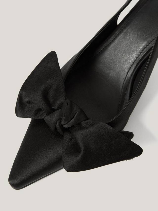 В этом сезоне вы будете выглядеть безупречно в этих элегантных и изысканных босоножках на каблуке с открытой пяткой. Удобная низкая шпилька, эффектный заостренный носок и регулируемые ремешки на щиколотке делают эти туфли идеальным вариантом как для повседневной носки, так и для вечернего выхода. Они очаровательно украшены атласным бантом спереди.