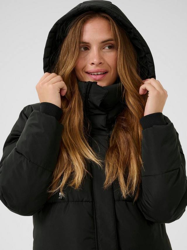 Удлиненное стеганое пальто KAFFE — создано для повседневных приключений. Практичный капюшон и надежная молния обеспечивают комфорт и тепло, позволяя вам быть готовыми ко всему, что может принести день.