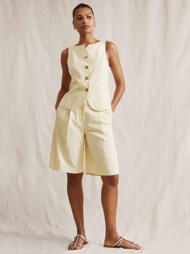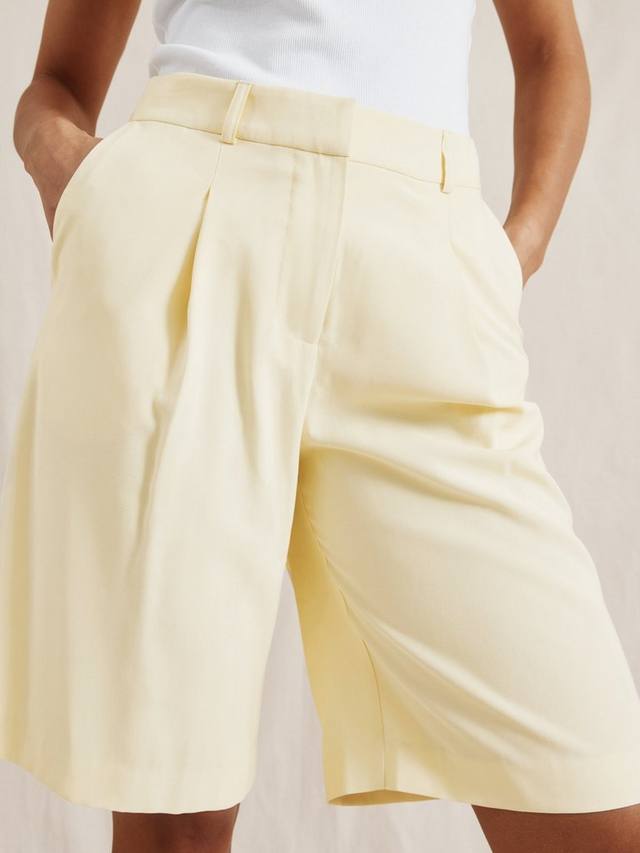 Эти шорты имеют классический удлиненный фасон с застежкой-молнией, складками спереди и боковыми карманами для функциональности. Выглядите и чувствуйте себя стильно без всяких усилий в этих вневременных шортах, которые можно носить с повседневной одеждой.