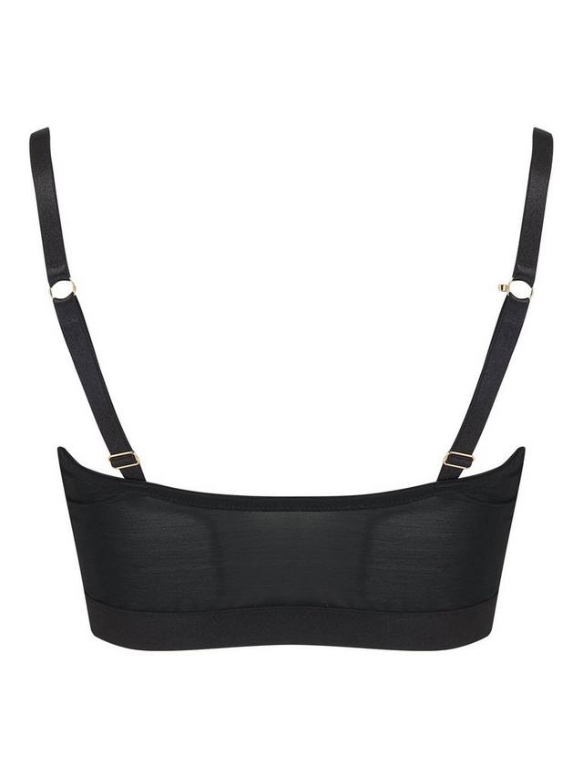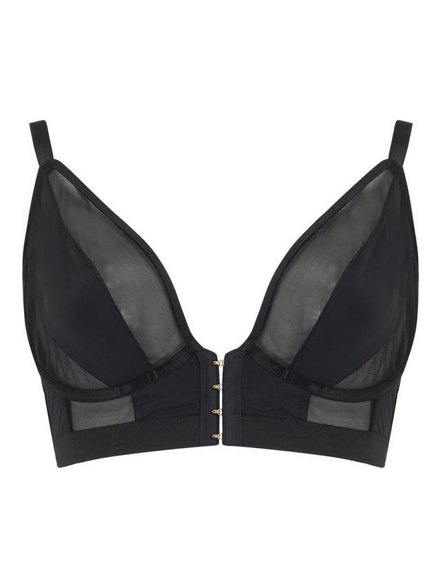 Удлиненный бюстгальтер с сетчатыми и тканевыми вставками. Чашечки расположены высоко на бретельках, чтобы вы не чувствовали себя слишком обнаженными. Встроенные косточки обеспечивают надежную, но комфортную посадку, а глубокий вырез добавляет еще больше выразительности. Застежка спереди на золотистые крючки и петли. Разработан эксклюзивно для Pour Moi моделью и инфлюенсером Индией Рейнольдс.