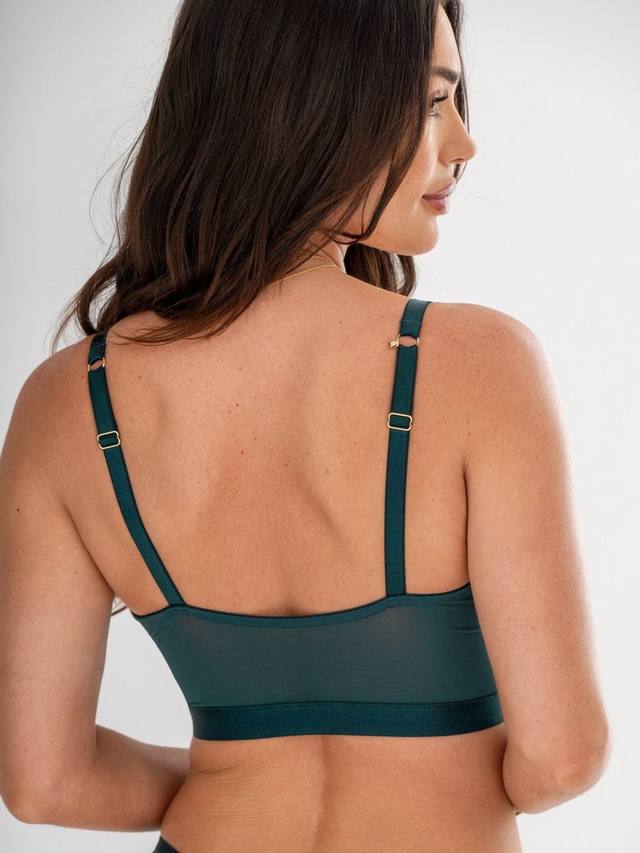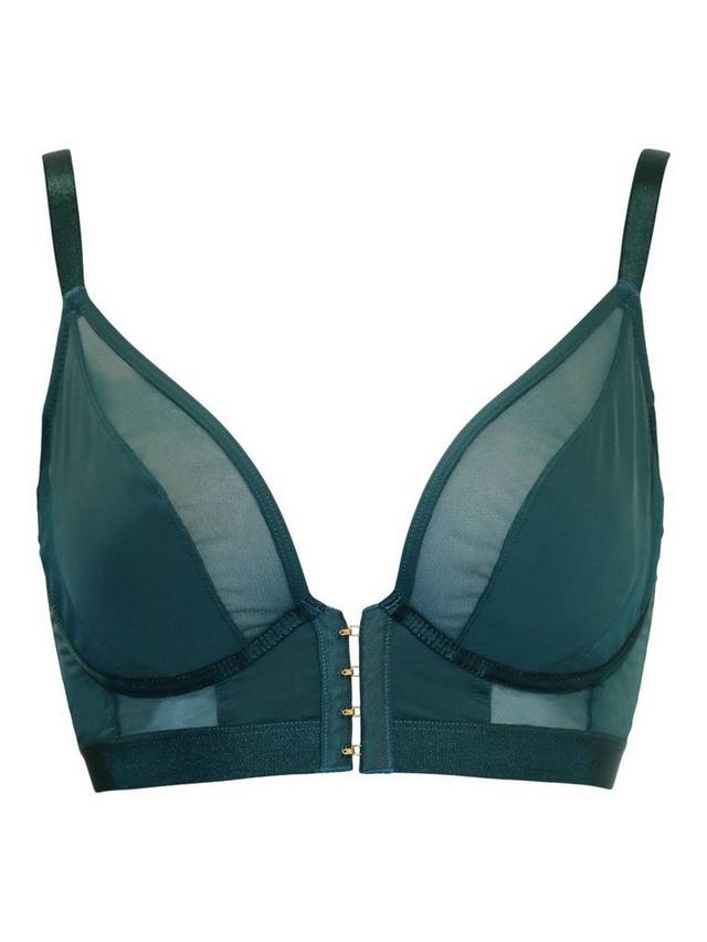 Удлиненный бюстгальтер с сетчатыми и тканевыми вставками. Чашечки расположены высоко на бретельках, чтобы вы не чувствовали себя слишком обнаженными. Встроенные косточки обеспечивают надежную, но комфортную посадку, а глубокий вырез добавляет еще больше выразительности. Застежка спереди на золотистые крючки и петли. Разработан эксклюзивно для Pour Moi моделью и инфлюенсером Индией Рейнольдс.