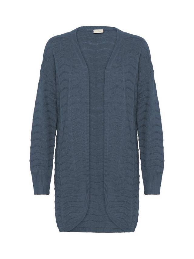 Удлиненный кардиган KAFFE с открытым воротом и мягкой вязкой средней плотности обеспечивает комфорт, а практичные карманы сохранят ваши руки в тепле, а все необходимое будет под рукой.