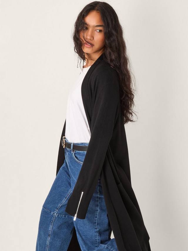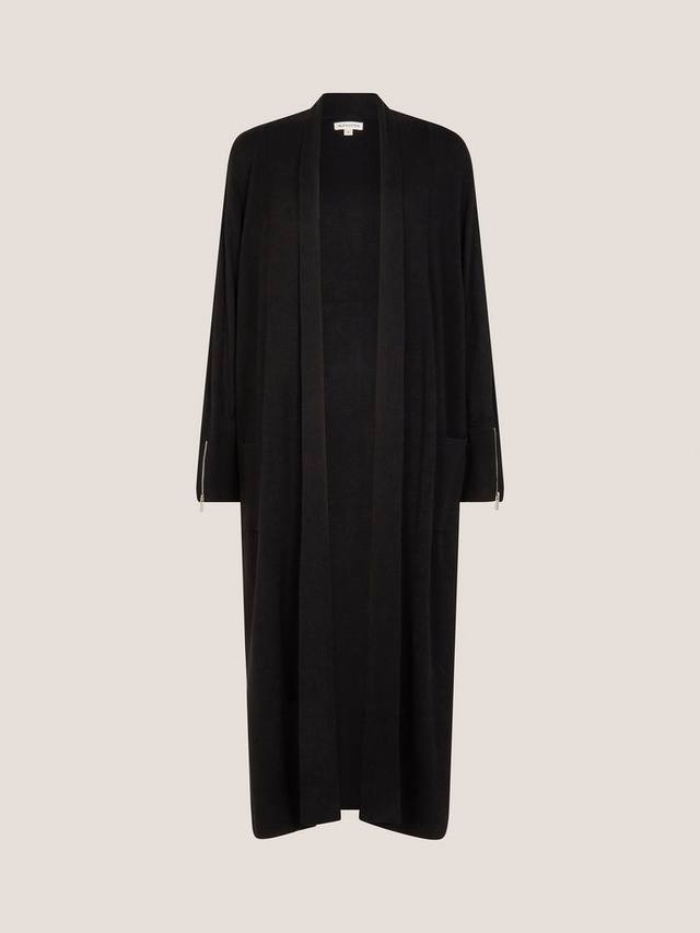 Этот удлиненный кардиган с открытым передом и застегивающимися на молнию манжетами идеально дополнит любой ваш образ.