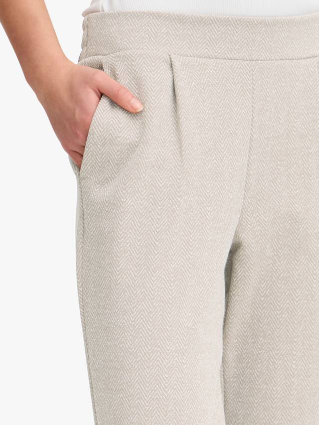 Выдерживают частую носку благодаря прочной ткани с жаккардовым узором елочка, укорочены по щиколотку.