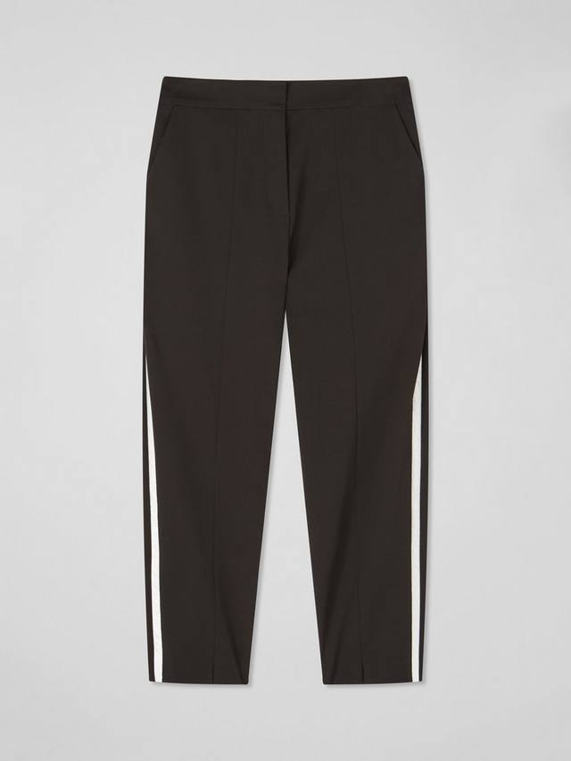 Эти чёрные брюки-сигареты из коллекции LKB London отличаются элегантным современным силуэтом с лёгкой изюминкой. Серебристая лента вдоль боковых швов добавляет металлический оттенок повседневным брюкам. Удобная посадка на талии и до щиколотки позволяет носить их с блузками, трикотажными изделиями и жакетами для создания современного и элегантного образа.