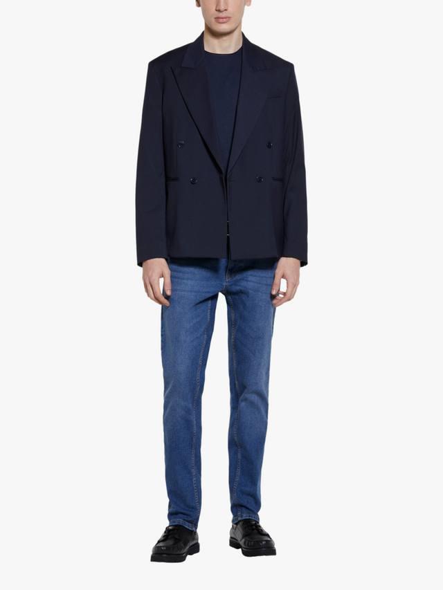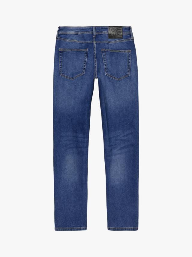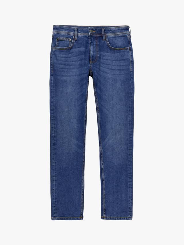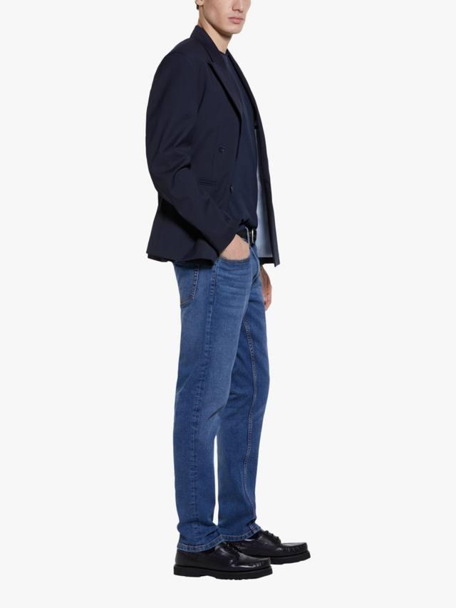 Ощутите стильный комфорт в этих облегающих джинсах из эластичного хлопкового денима. Эти универсальные джинсы имеют среднюю посадку на талии и узкие брюки, идеально подходящие для любого повседневного случая.