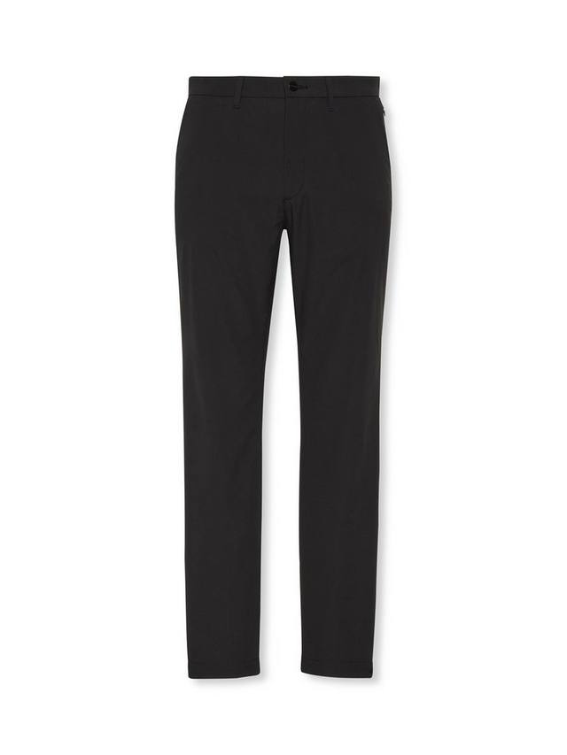 Облегающие брюки со средней посадкой, изготовленные из технологичной полиэстеровой ткани. Застежка на молнию, боковые карманы, прорезные карманы сзади и тональный логотип Calvin Klein над задним карманом.