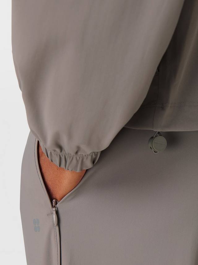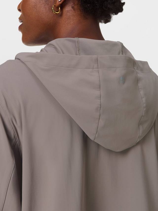 Повседневная модель на молнии из сверхлегкой, немнущейся ткани Explorer. Свободный свободный крой со спущенной линией плеча и эластичными манжетами. Регулируемые застежки-фиксаторы на подоле. Два боковых кармана и несъемный капюшон.