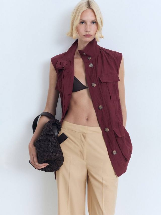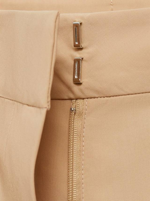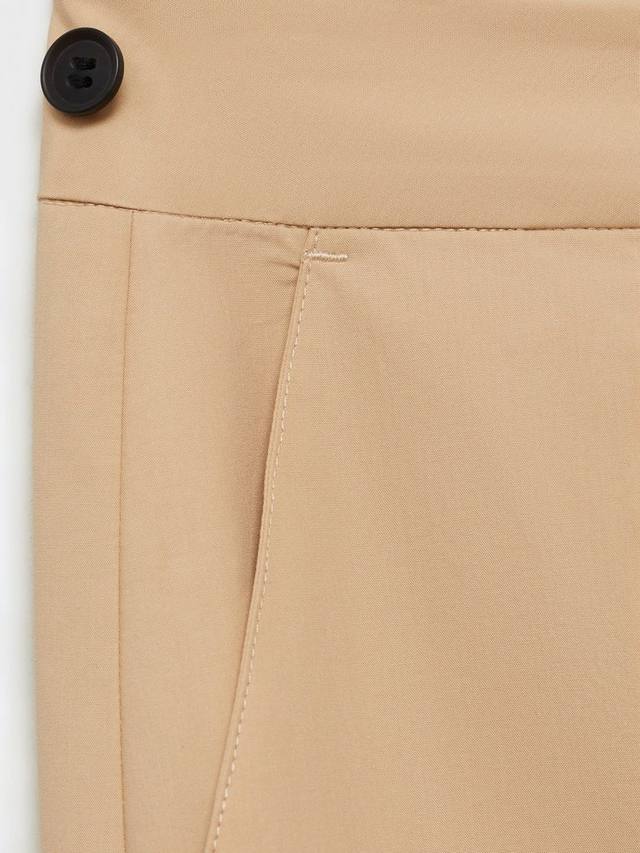 Чёткий силуэт, подчёркнутый прямыми штанинами – брюки от Mango из смесовой хлопковой ткани. Средняя посадка, потайная застёжка на пуговицу, крючок и молнию, укороченный нижний край.