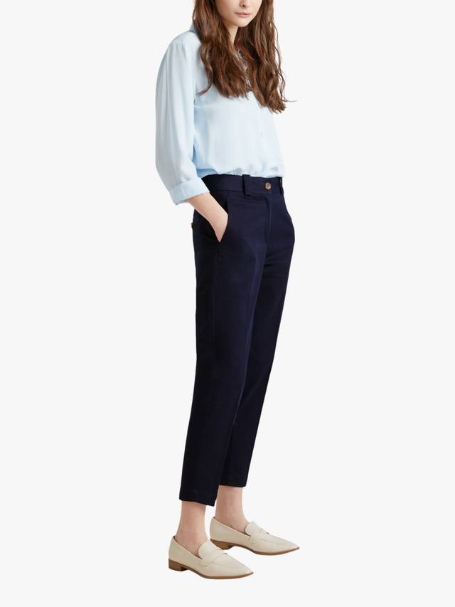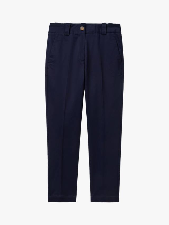 Зауженные к низу брюки чинос Benetton из хлопчатобумажной ткани с изящной точностью. Они имеют среднюю посадку, застежку на пуговицу и молнию, а также укороченный низ.