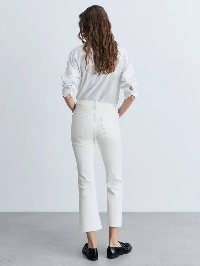 Эти джинсы Mango средней посадки облегают бедра и ягодицы, а затем расклешаются к низу. Они изготовлены из натурального хлопка для воздухопроницаемости и укорочены для создания свежего образа.