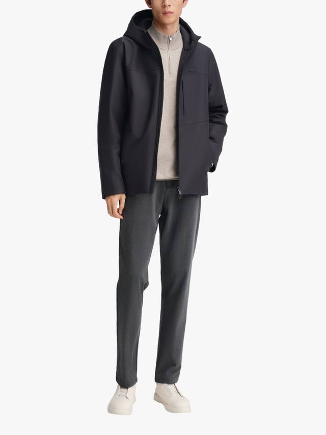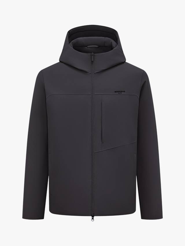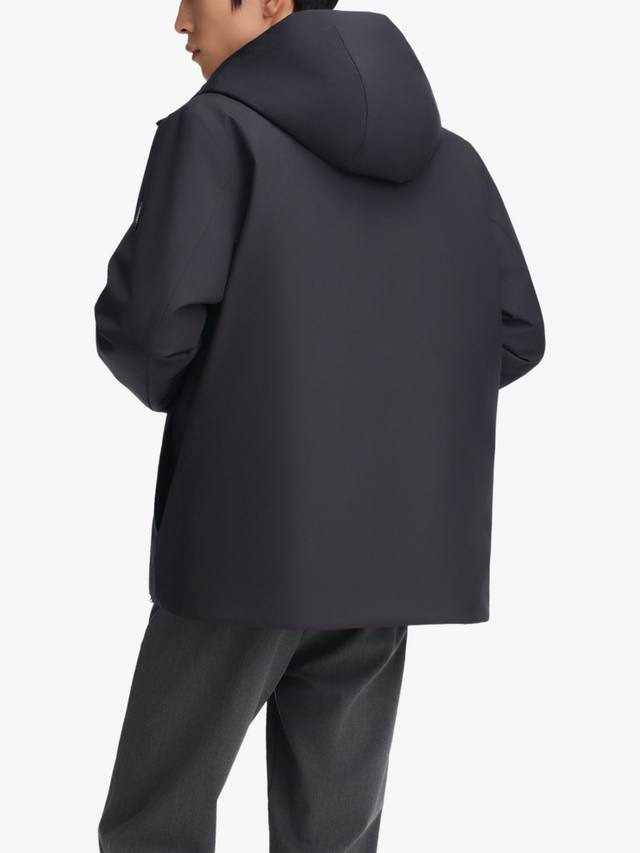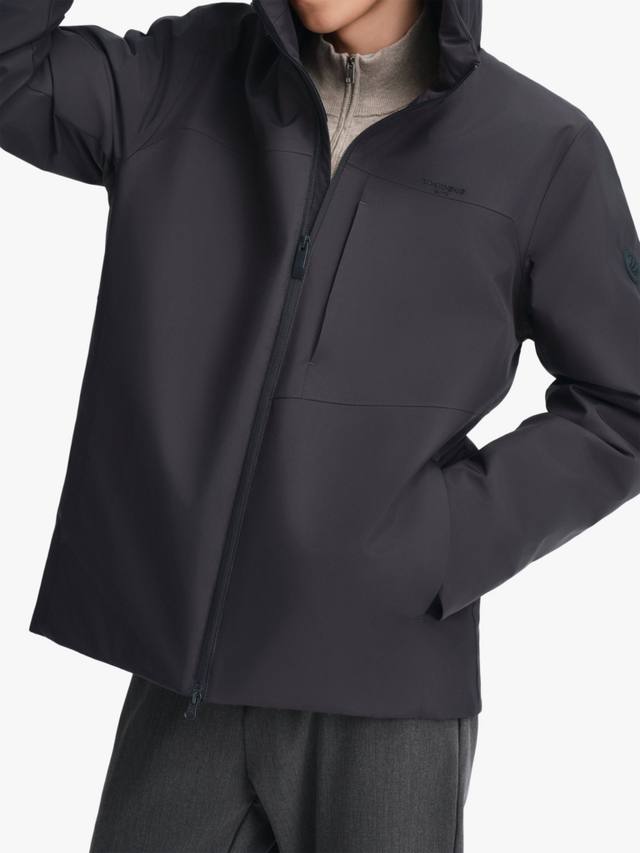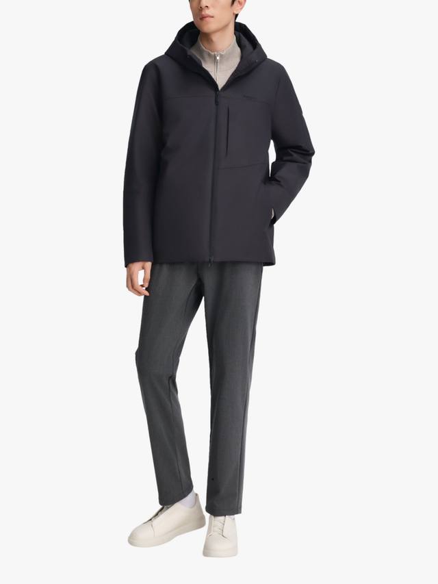 Эта короткая куртка сочетает в себе изысканный деловой стиль и долговечное тепло благодаря высококачественному гусиному пуху и утеплителю немецкой разработки. Структурированная водоотталкивающая ткань обеспечивает лёгкий блеск и приятна на ощупь. Разработанный с чистым силуэтом с капюшоном, он идеально подходит для комфорта в дороге с утра до вечера.