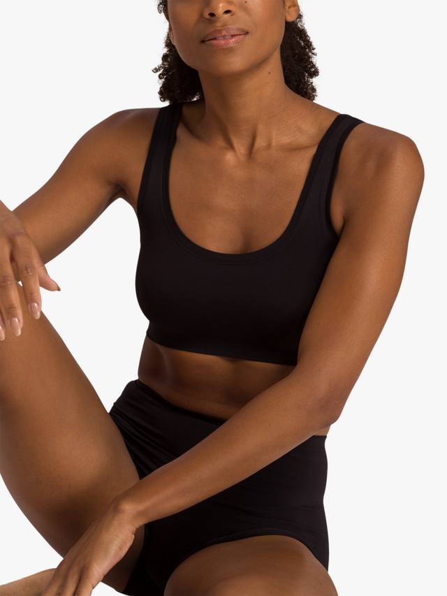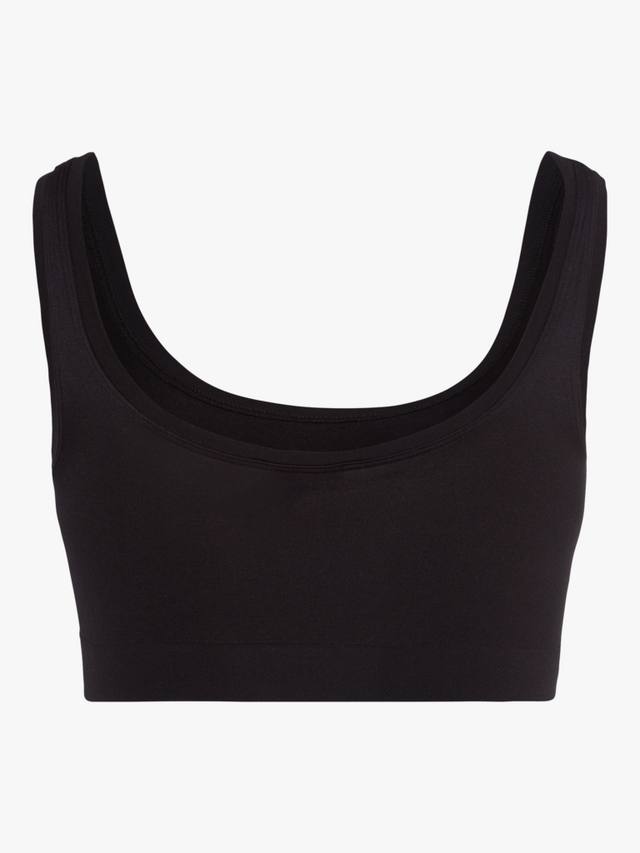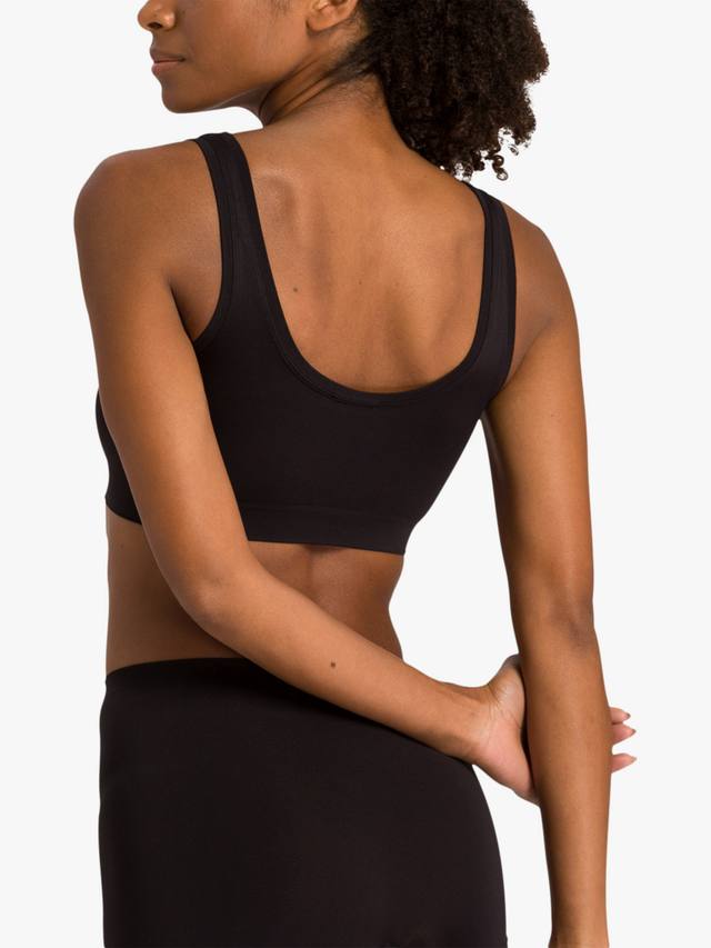 Этот спортивный и стильный укороченный топ с широкими бретелями обеспечивает дополнительный комфорт. Он сшит из дышащей смеси микрофибры и эластана для индивидуальной эластичной посадки. Тонкая рубчатая отделка вокруг выреза создает гладкий вид, а эластичный подгиб снизу обеспечивает поддержку груди.