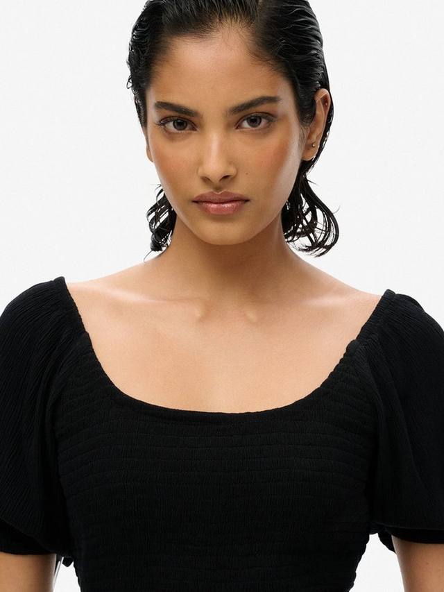 Этот укороченный топ от Superdry имеет современный силуэт и текстурированный эффект, создавая смелый образ.