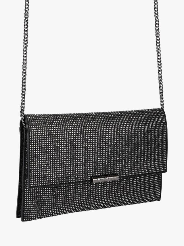 Эта сумка-клатч Caterina выполнена в черном цвете и украшена кристаллами. На клапане находится стильная металлическая пластинка с логотипом Carvela, а также съемные ремешки для ношения на плече и на запястье, что позволяет создавать различные образы.